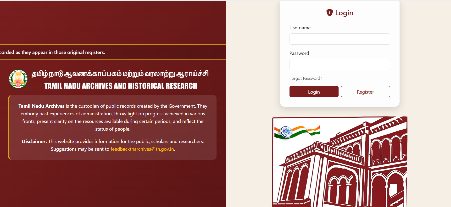To use the Digi Tamil Nadu Archives website, you need a mobile phone or computer with internet connection. Open your browser and search for “Digi Tamil Nadu Archives.” Once you open the site, you will see different options like search records, login, and document categories.